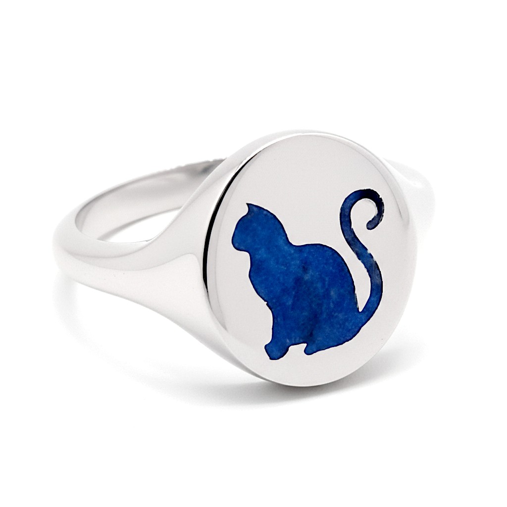 The Special Cat Dakota Ash Ring symbolizes a ” Friend”.’ It can be customized with a deep laser engraving of your Cats Silhouette, providing a resting place for your beloved pet’s ashes, also encircled by the image. It can be adorned with small, shimmering opal pieces from our collection, available in four levels of visibility: opaque, translucent, semi-transparent, and transparent.