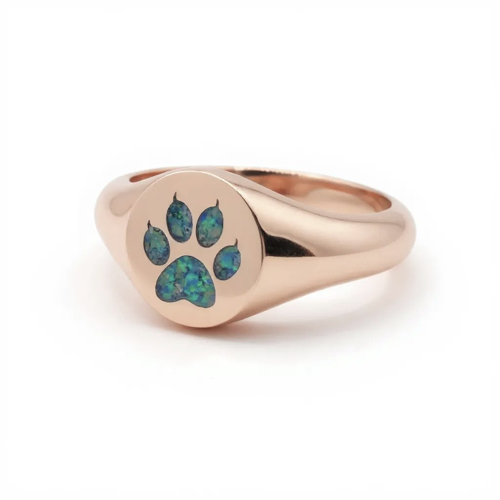 The Special Cat Scout Ash Ring symbolizes a ” Love”.’ It can be customized with a deep laser engraving of your Cat Silhouette, providing a resting place for your beloved pet’s ashes, also encircled by the image. It can be adorned with small, shimmering opal pieces from our collection, available in four levels of visibility: opaque, translucent, semi-transparent, and transparent. You can feature transparent ashes within the main image of your cat.