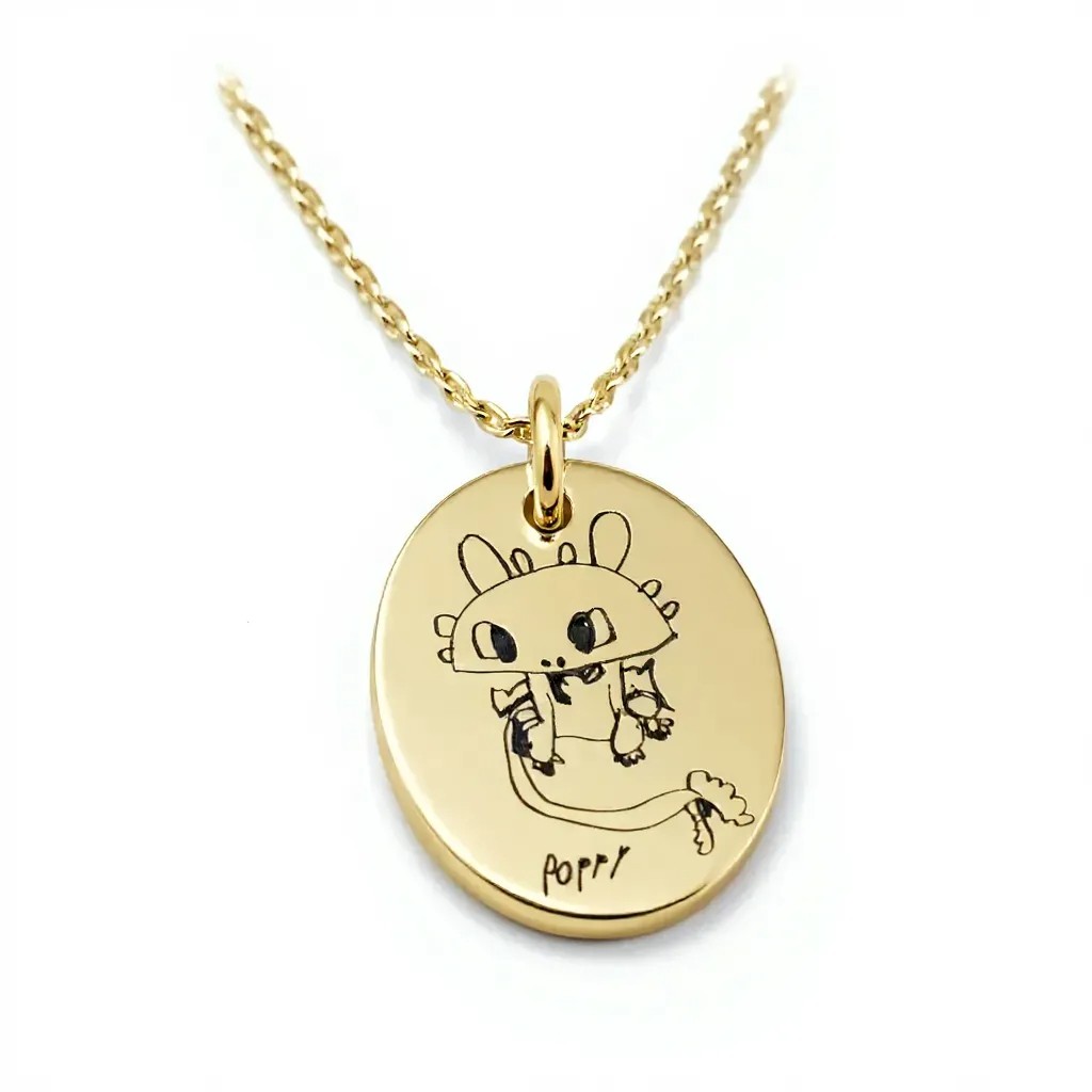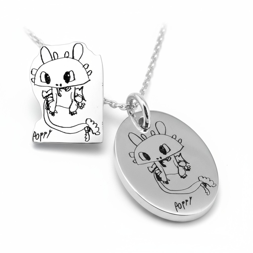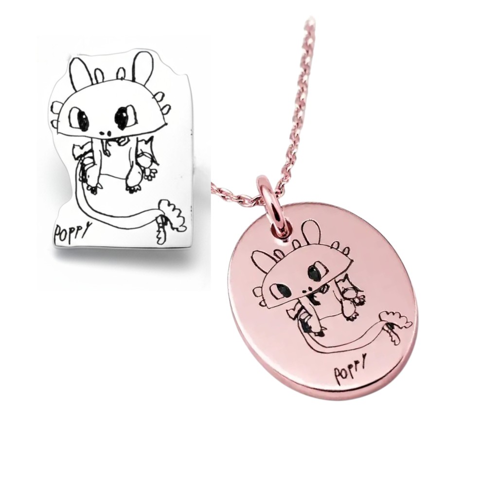 Hold time still with your budding artists special drawing recreated by us with love on your own individualized Pendant.